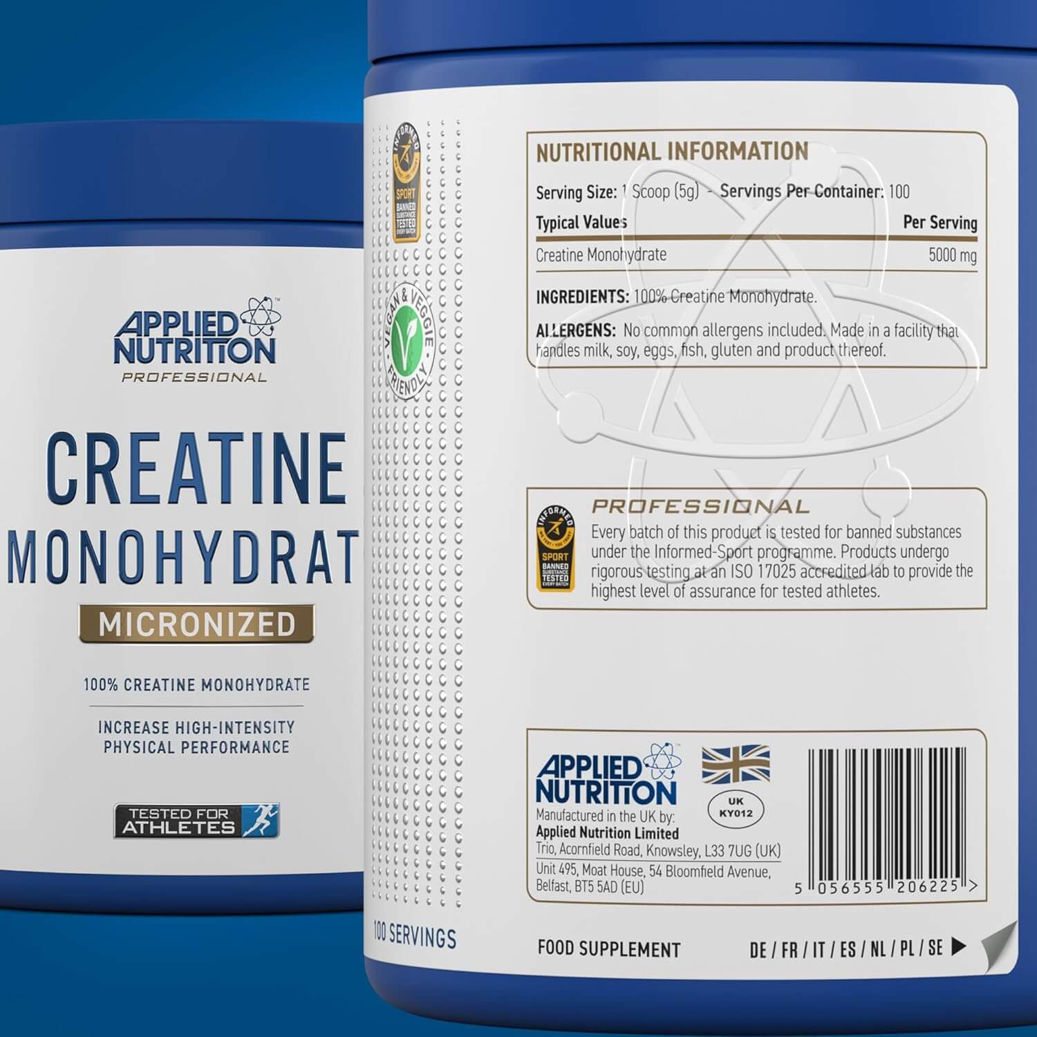 Applied Nutrition Creatine monohydrate ProfessionalKreatin monohydrát v prášku je vysoce účinný a široce zkoumaný doplněk stravy určený ke zlepšení sportovního výkonu, zvýšení svalové síly a podpoře růstu svalů. Tento čistý a neochucený prášek je ideální pro sportovce, kulturisty a fitness nadšence, kteří chtějí zlepšit svou celkovou tréninkovou kapacitu a dosáhnout svých fitness cílů. Kreatin od Applied Nutrition poskytuje nejčistší a nejsnadněji vstřebatelný kreatin monohydrát na trhu.