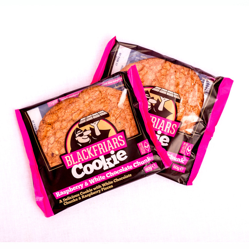 Zcela nezaměnitelné originální Anglické Cookie s bílou čokoládou a kouskami malin.